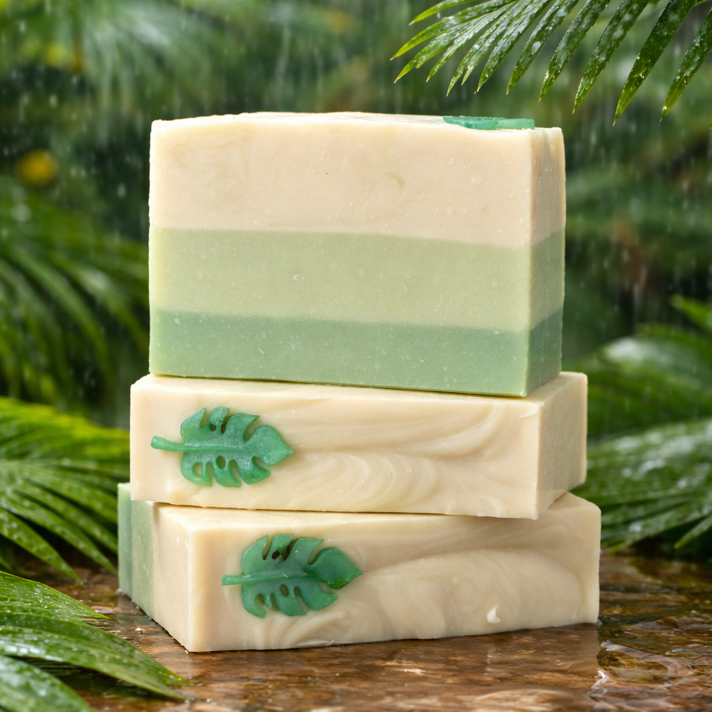 A fresh, earthy soap inspired by the first moments of a summer storm. Bright bergamot and green herbal notes open the scent, followed by soft jasmine and warm sandalwood. It settles into rain-kissed earth with patchouli, cedarwood, vetiver, and musk, gently warmed by amber and orange blossom. Clean, grounding, and deeply calming.
