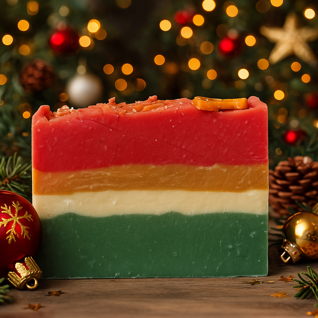 Ingredients: Saponified Olive oil, Coconut oil, Palm oil (RSPO certified), Avocado oil, Shea butter, Castor oil, Distilled water, Coconut Milk, Kaolin Clay, Phthalate free fragrance, Citric acid, Arrowroot starch, Titanium dioxide, Mica.